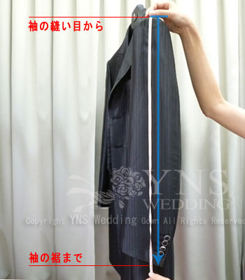 タキシードで一番大切な採寸箇所は、「肩幅」と「袖丈」になります。