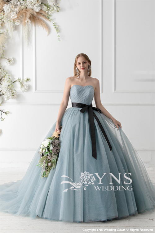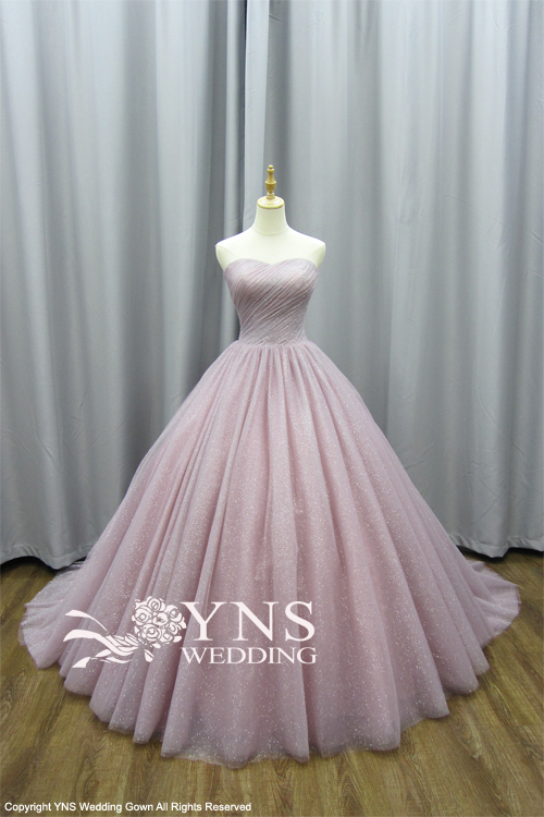 薄グレーとくすみピンクで存在感抜群のドレス。