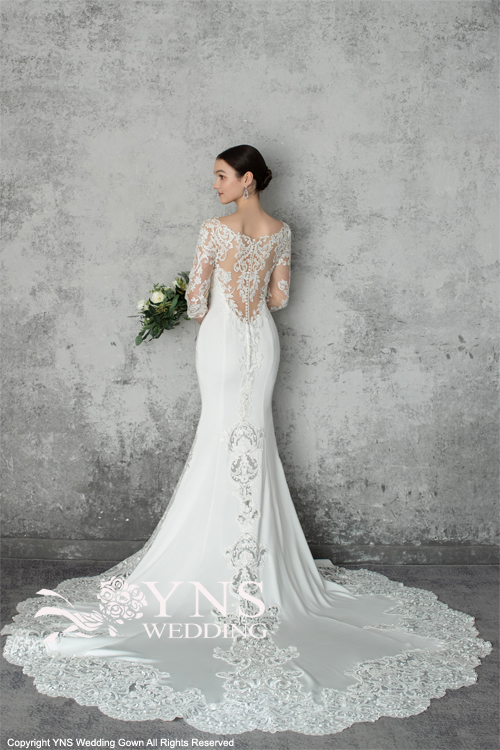 また、大きなチャペルに合わせてトレーンを「長く」。
