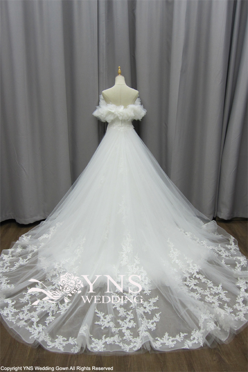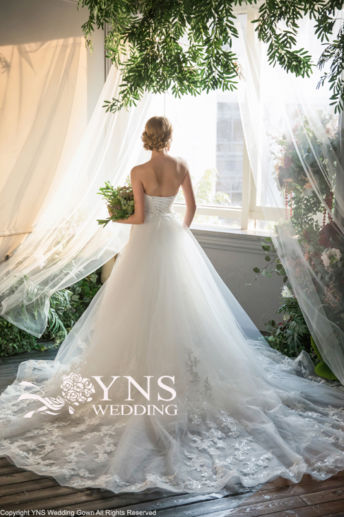 また、大きなチャペルに合わせてトレーンを「長く」。