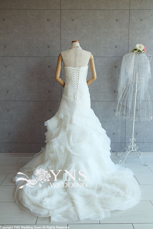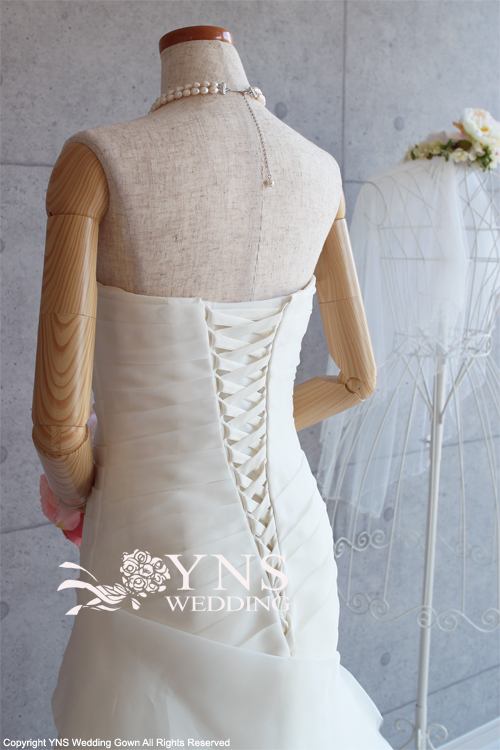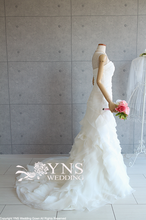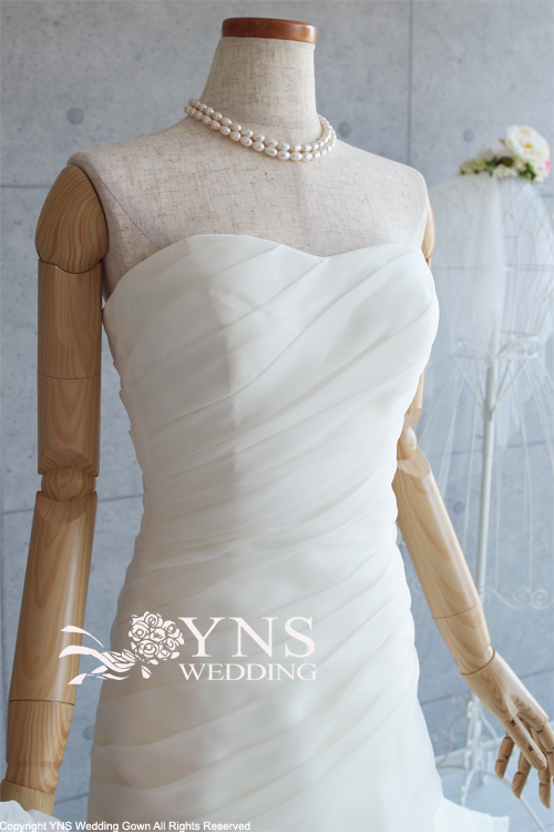 ヒップから膝の絞りがマーメイドラインのようにタイトでないため、マーメイドラインに比べ、着用しやすく、また歩きやすいドレスラインです。