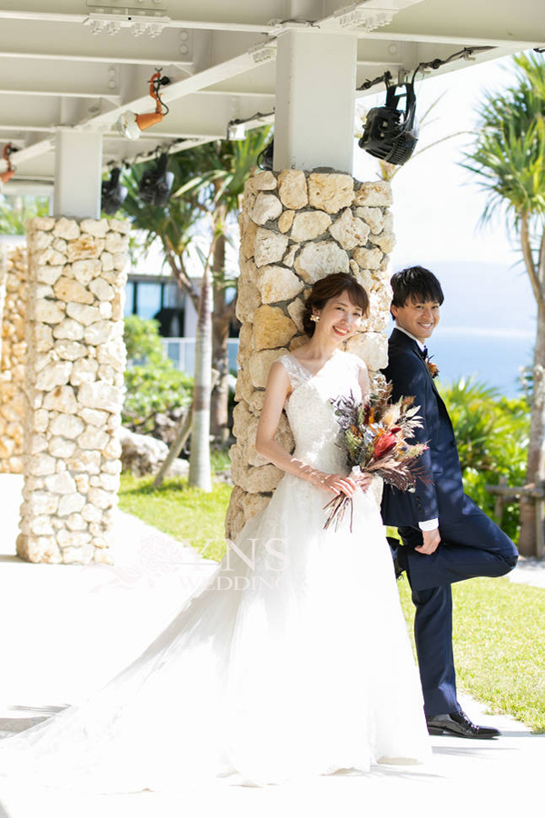 沖縄での挙式と都内で行うパーティーで両方来たかったのでトレーンの長さも少しカットもしてもらいました。
